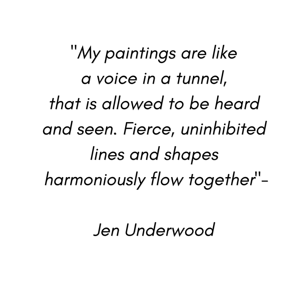 Jen Underwood has been an Abstract Expressionist Artist since early 2019. She paints hidden feelings and emotions with depth and power. She refers to herself as the: ‘Musical Artist” because she paints while listening to songs that evoke emotion. She currently lives in North Carolina and is 51 years old. Read blog to learn more.