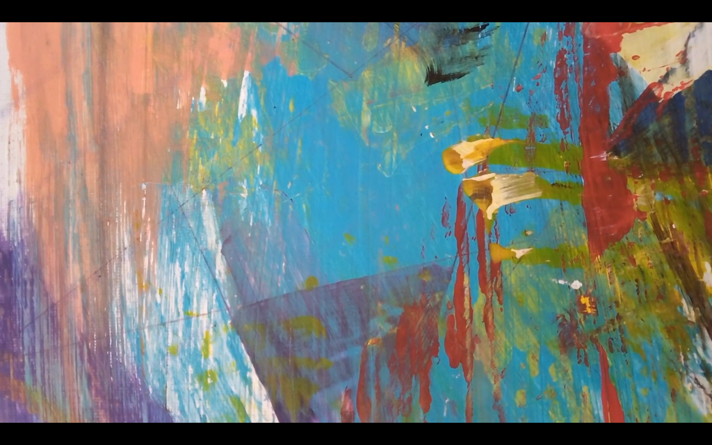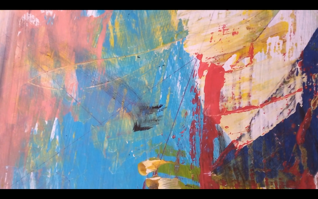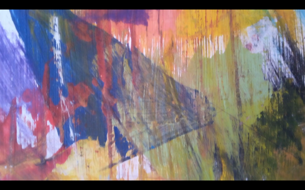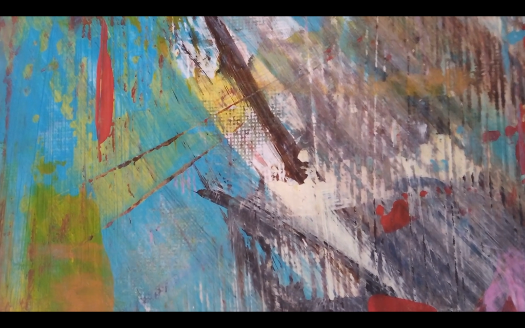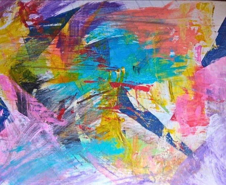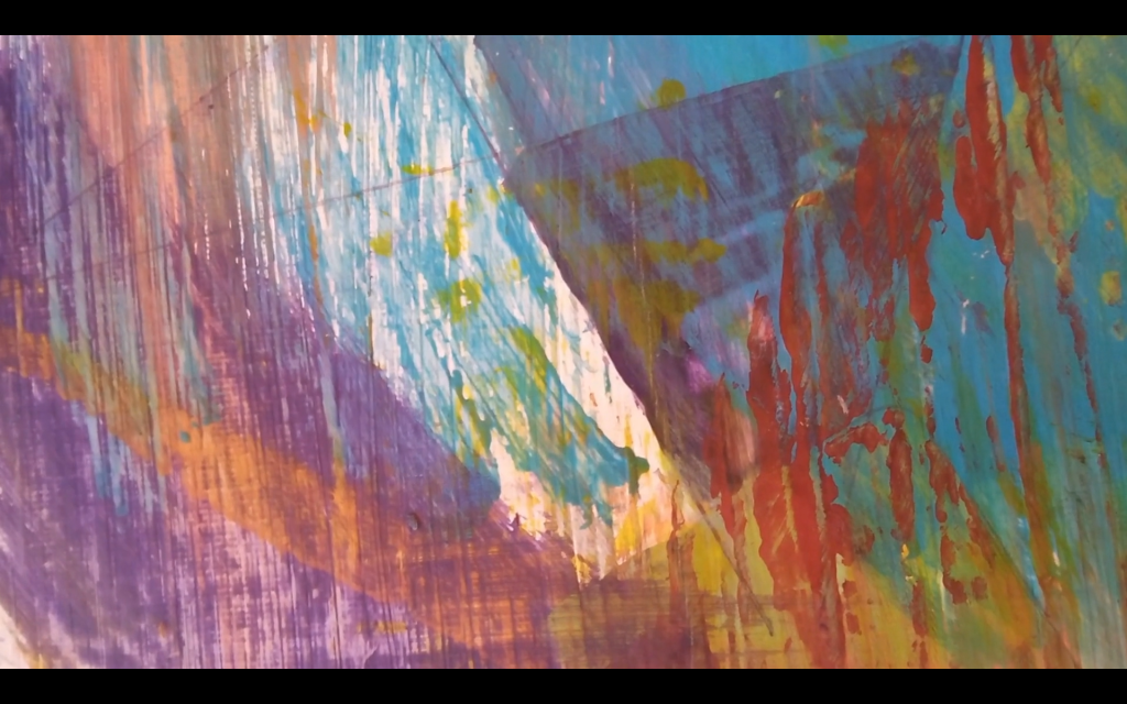 So I took a rag and started to swipe the areas of the shapes I made and this was the result. I wanted as much color as I could get because color represents life. I used a metal scraper to add effects here and there, some edges to it. It remains to this day, a painting perfect for those who feel like a triangle trying to squeeze into a circle, so to speak.
