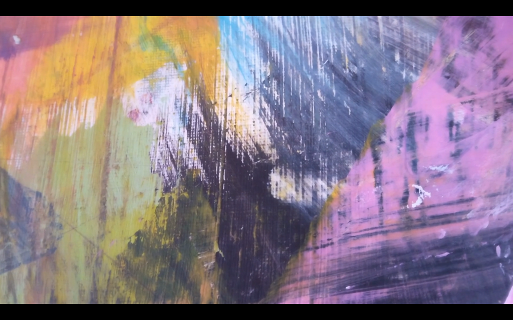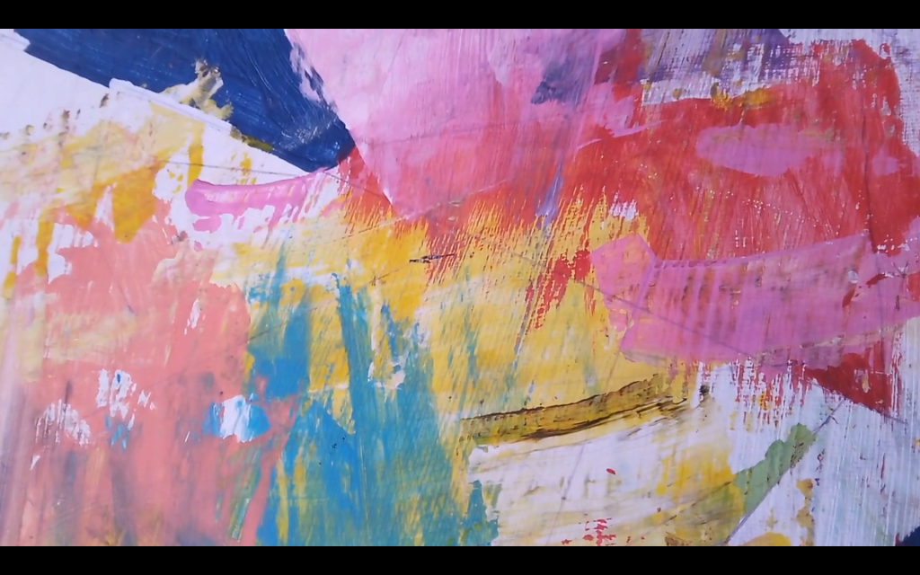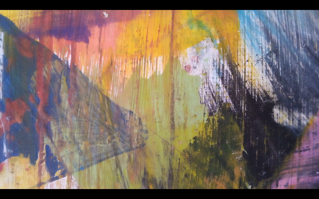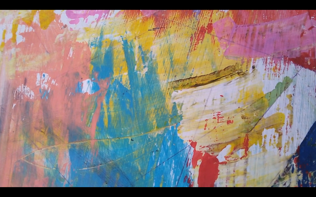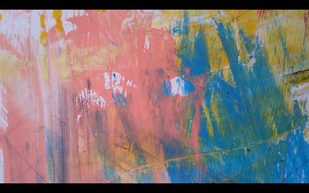 So I took a rag and started to swipe the areas of the shapes I made and this was the result. I wanted as much color as I could get because color represents life. I used a metal scraper to add effects here and there, some edges to it. It remains to this day, a painting perfect for those who feel like a triangle trying to squeeze into a circle, so to speak.
